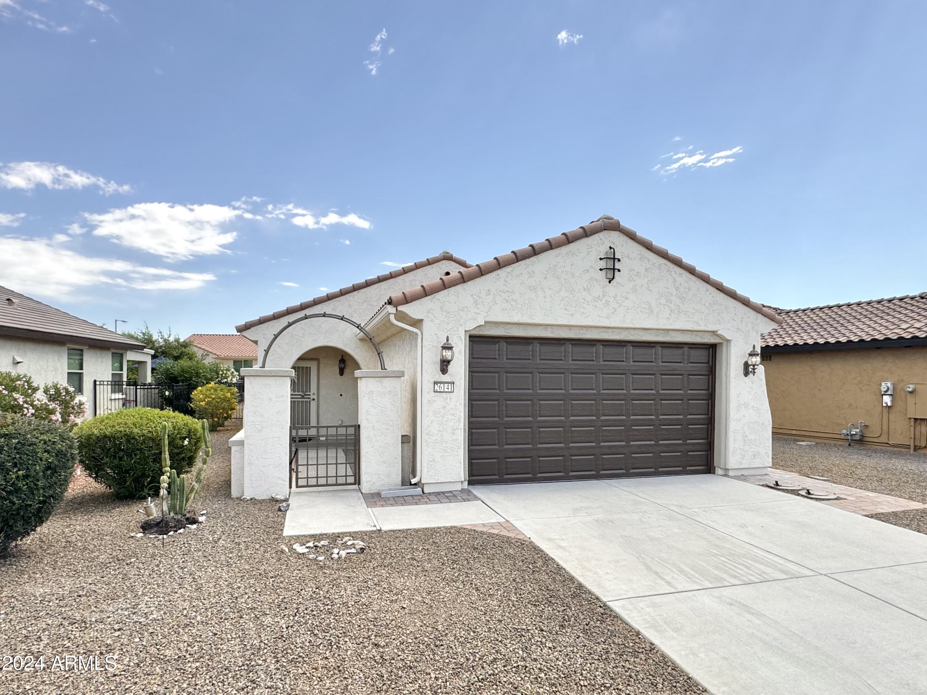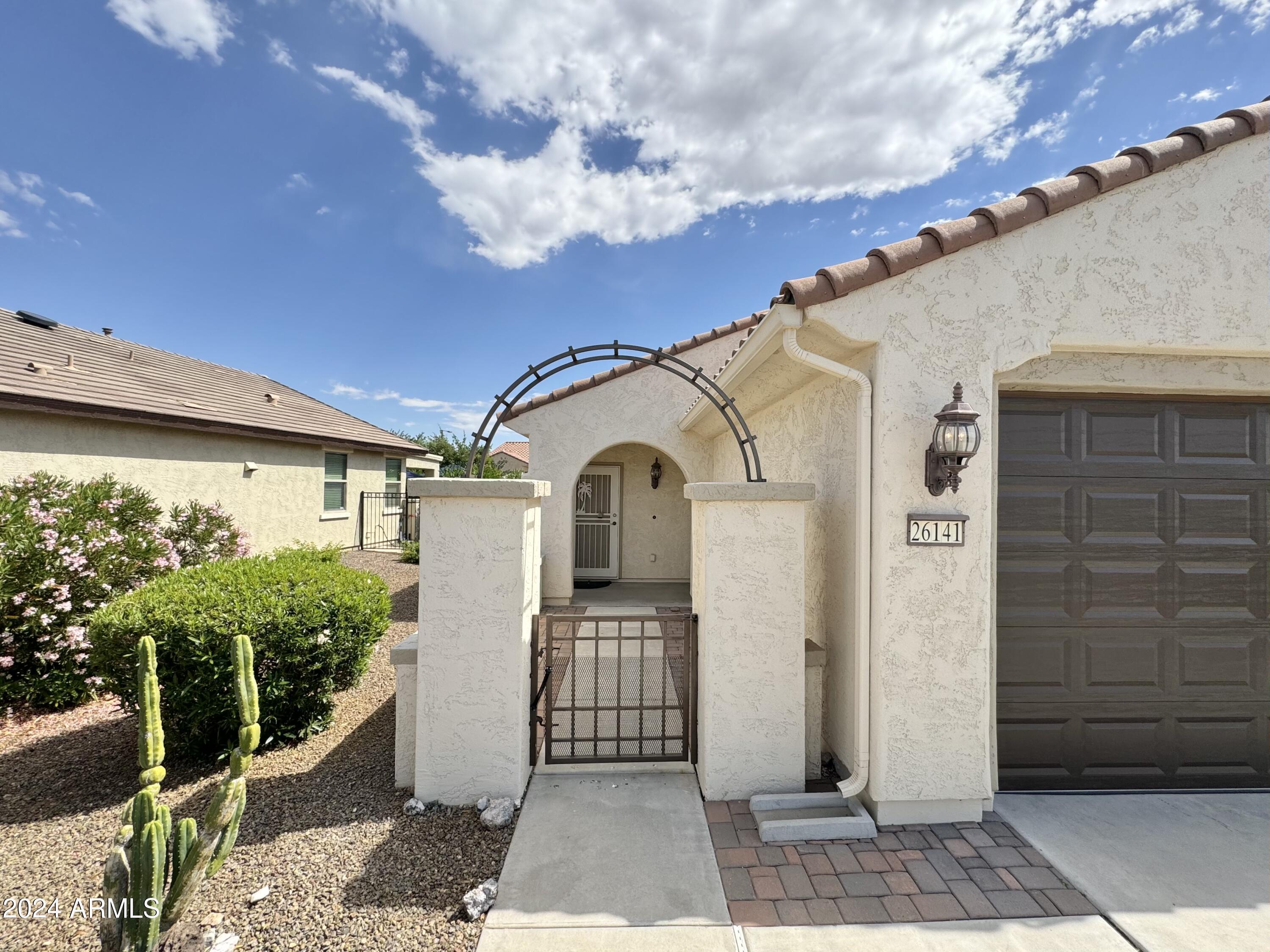 Welcome to this fantastic home in the beautiful Arizona desert, located within the 55+ Sun City Festival community. This property has a fantastic layout, with a central living area, open kitchen and dining concept, and a lovely master suite overlooking the yard. The master features a walk-in closet, bathroom vanity with lots of extra counter space, as well as a walk-in shower with bench! Kitchen features wood cabinetry, bar counter, upgraded stainless steel appliances, and a gas range! Both bedrooms have beautiful, updated wood-style flooring! The home has lots of storage/closet space while the laundry room is conveniently located off the main living area and also features built-in storage cabinets. You can also enjoy the beautiful Arizona weather all year long from your rear patio! The yard features a gorgeous turf lawn and pavers with desert landscaping – making it easy and low maintenance!