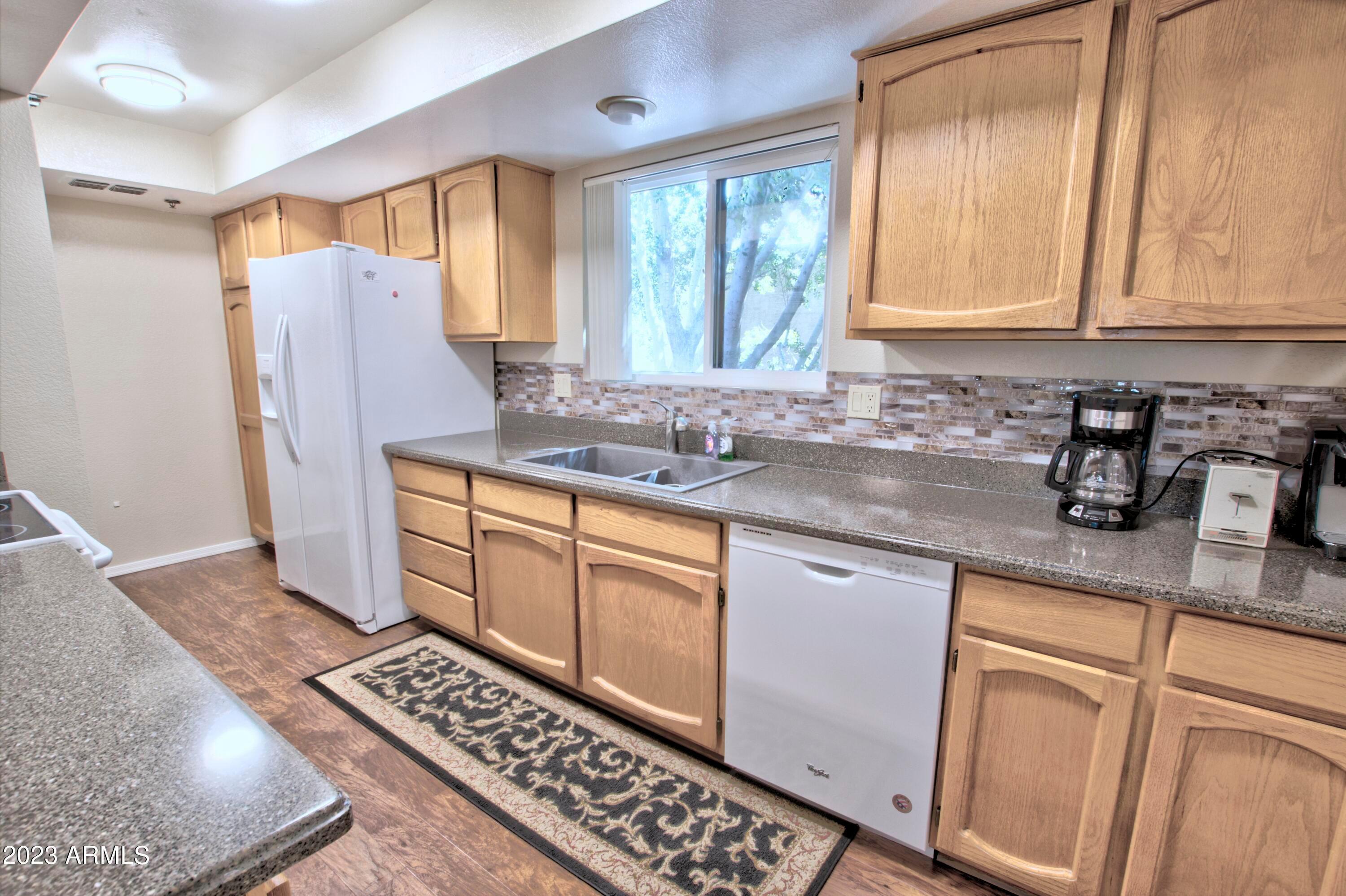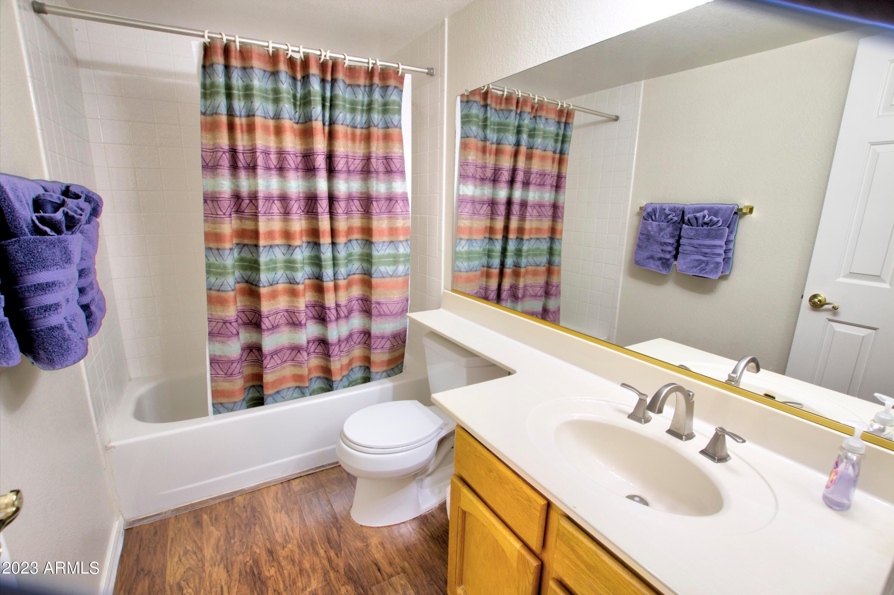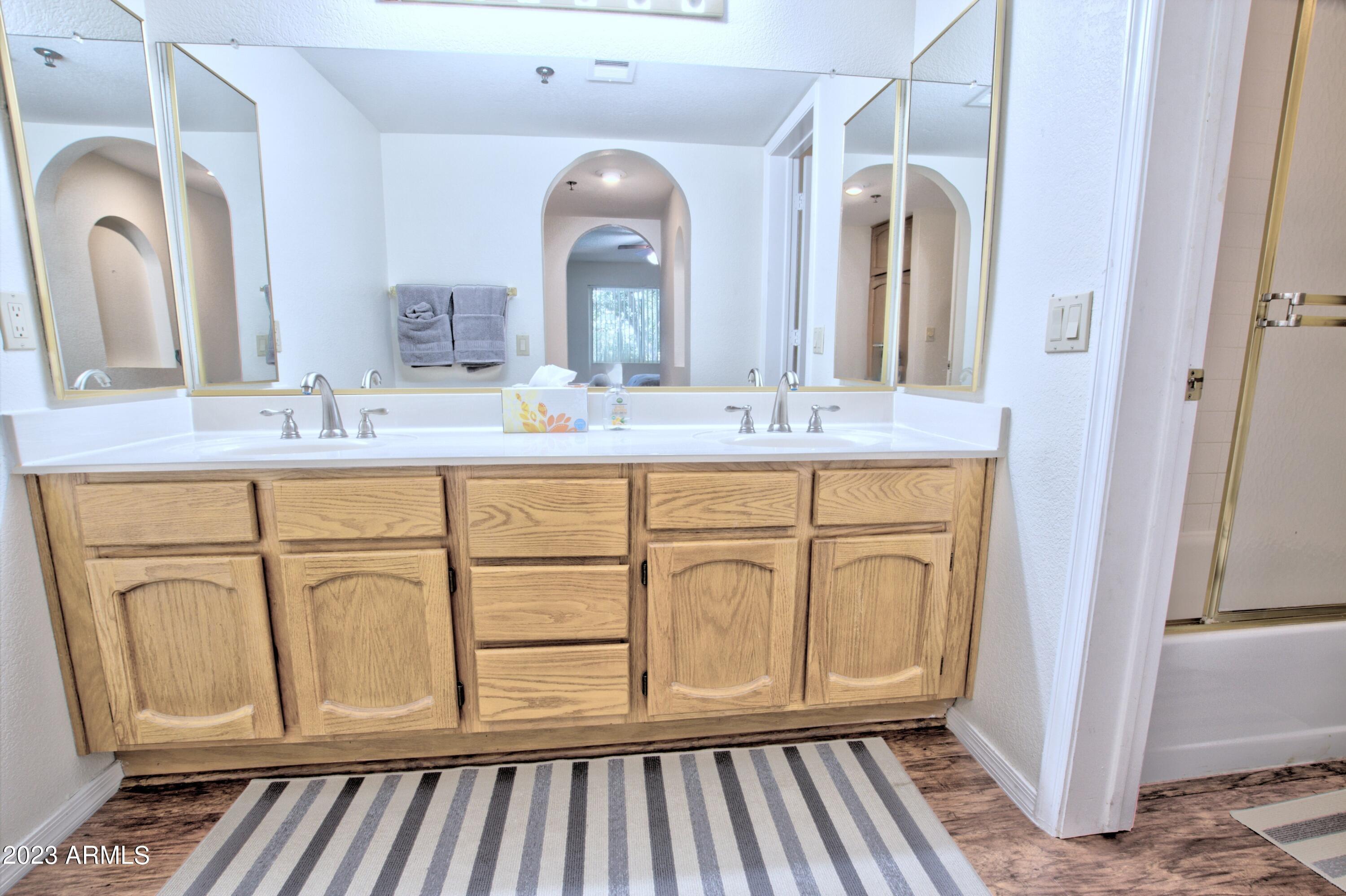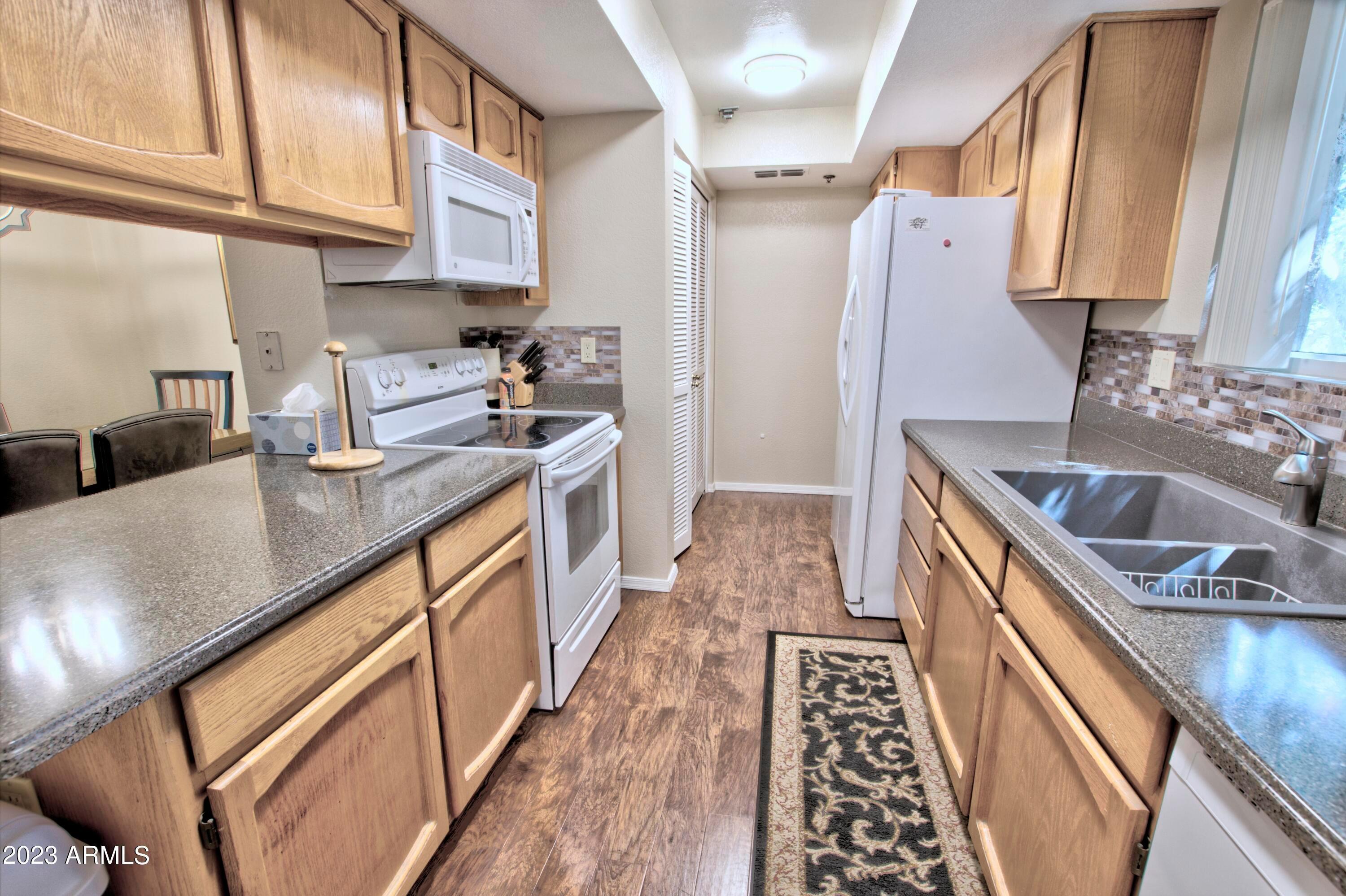 Beautiful move in ready and fully furnished condo in a prime location with view of community pool, Center Court, and views of Camelback Mountain. You’ll be thrilled by the charming interior with a neutral paint, laminate flooring in high-traffic areas, a cozy fireplace, and a living room with sliding door access to the balcony. Beautiful dining room, galley kitchen with upgraded countertops and plenty of space, and a breakfast bar. Relax after a hard day’s work in the primary bedroom with a large closet and a private bathroom with dual sinks. Grab your favorite drink and relax on the balcony. Perfect location walking distance from Old Town Scottsdale. Gain access to community amenities such as a heated pool, tennis courts, clubhouse and more! This rare gem will go fast