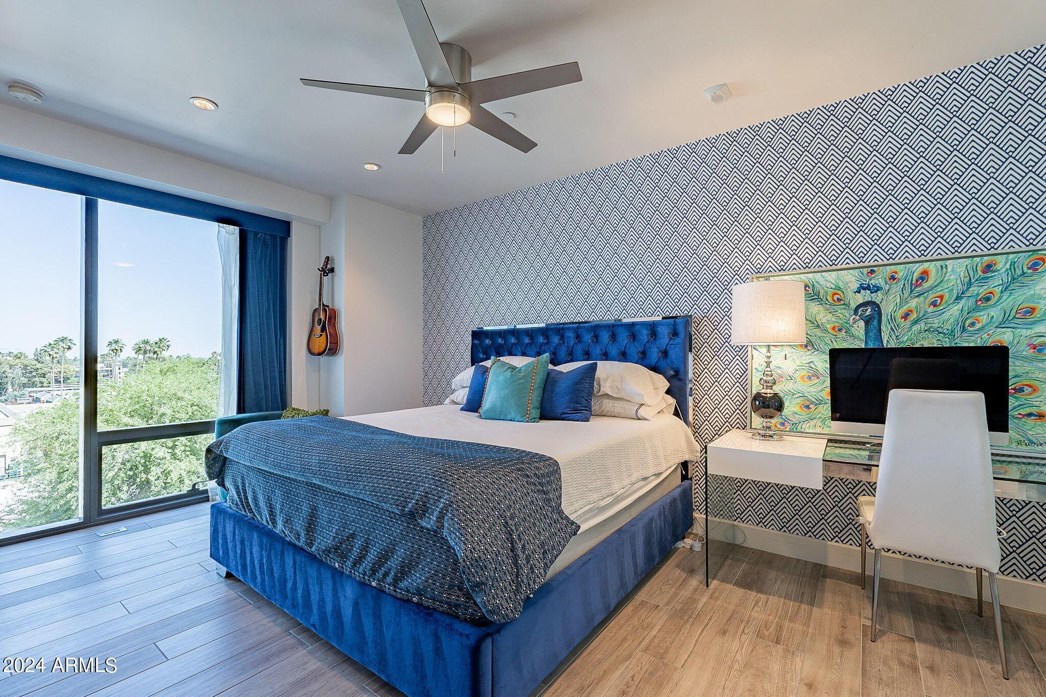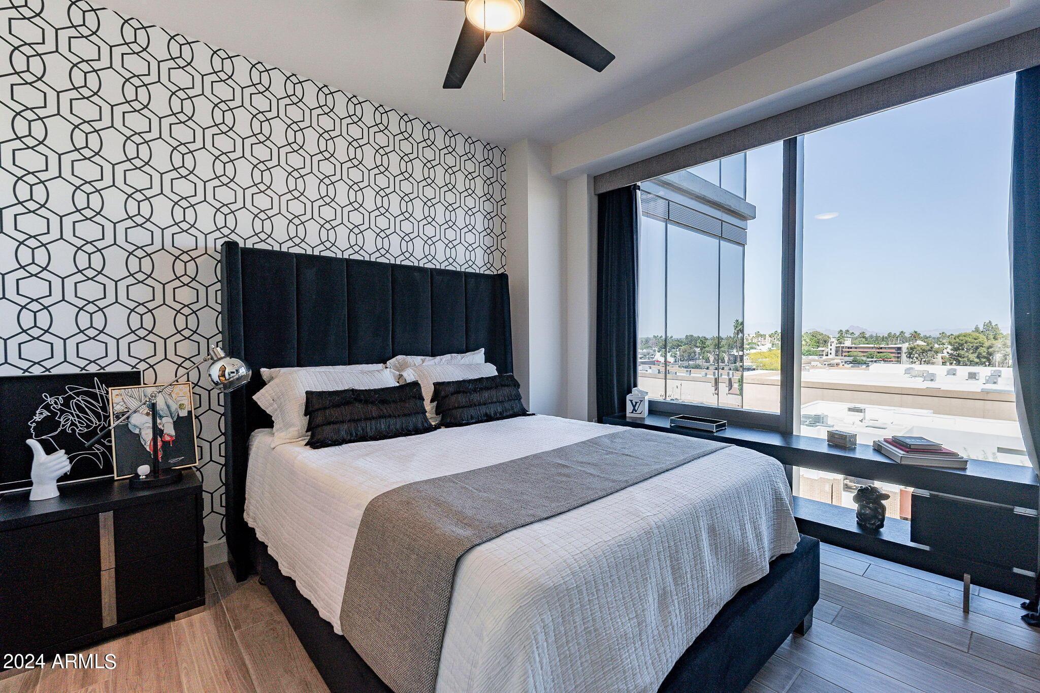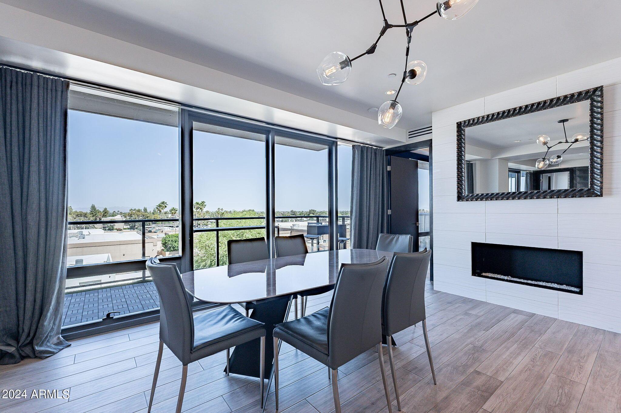 Sleek sophistication and stunning views; every detail of this contemporary residence is sculpted to perfection. This stunning furnished rental offers a spacious open floor plan as one of the largest units in Envy. Unobstructed jaw dropping views and 243 sq ft of double balconies including a gas stub out with grill. The newly designed kitchen showcases Bosch appliances, Poggenpohl Cabinets, double wine refrigerators and modern fireplace. The newly designed master suite offers an extra large walk in closet, with a spacious shower and deep soaking tub. The 2nd bedroom has a ensuite and the office offers a murphy bed. Amenities include 4,000 sq. ft. fitness center, exclusive owners only Black Label Lounge, concierge & gorgeous pool. Ideally located in the heart of Old Town Scottsdale.