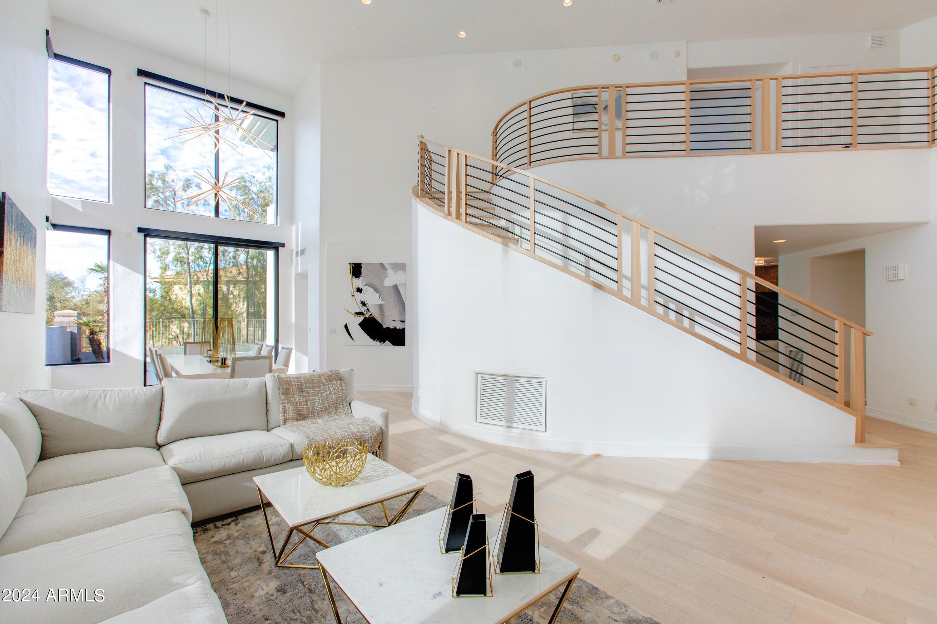 Welcome to the Biltmore Hillside Villas! FURNISHED!! Meticulously remodeled near majestic mountains for ultimate privacy and SECURITY. Enjoy 28-foot ceilings, natural light, light oak hardwood flooring and motorized solar shades throughout. The elegant formal living and dining rooms are perfect for entertaining. Chef’s kitchen features brand new Wolf appliances and quartz countertops. Junior Suite/Office on first level with built-in desks with bathroom. Spacious Primary Suite on the second floor with dual closets and remarkable MOUNTAIN VIEWS from the spa-inspired bathroom and private patio. Three additional bedrooms upstairs. Low maintenance backyard with one of the largest swimming pools in the neighborhood. 3 car garage, downstairs laundry and lots of storage space.