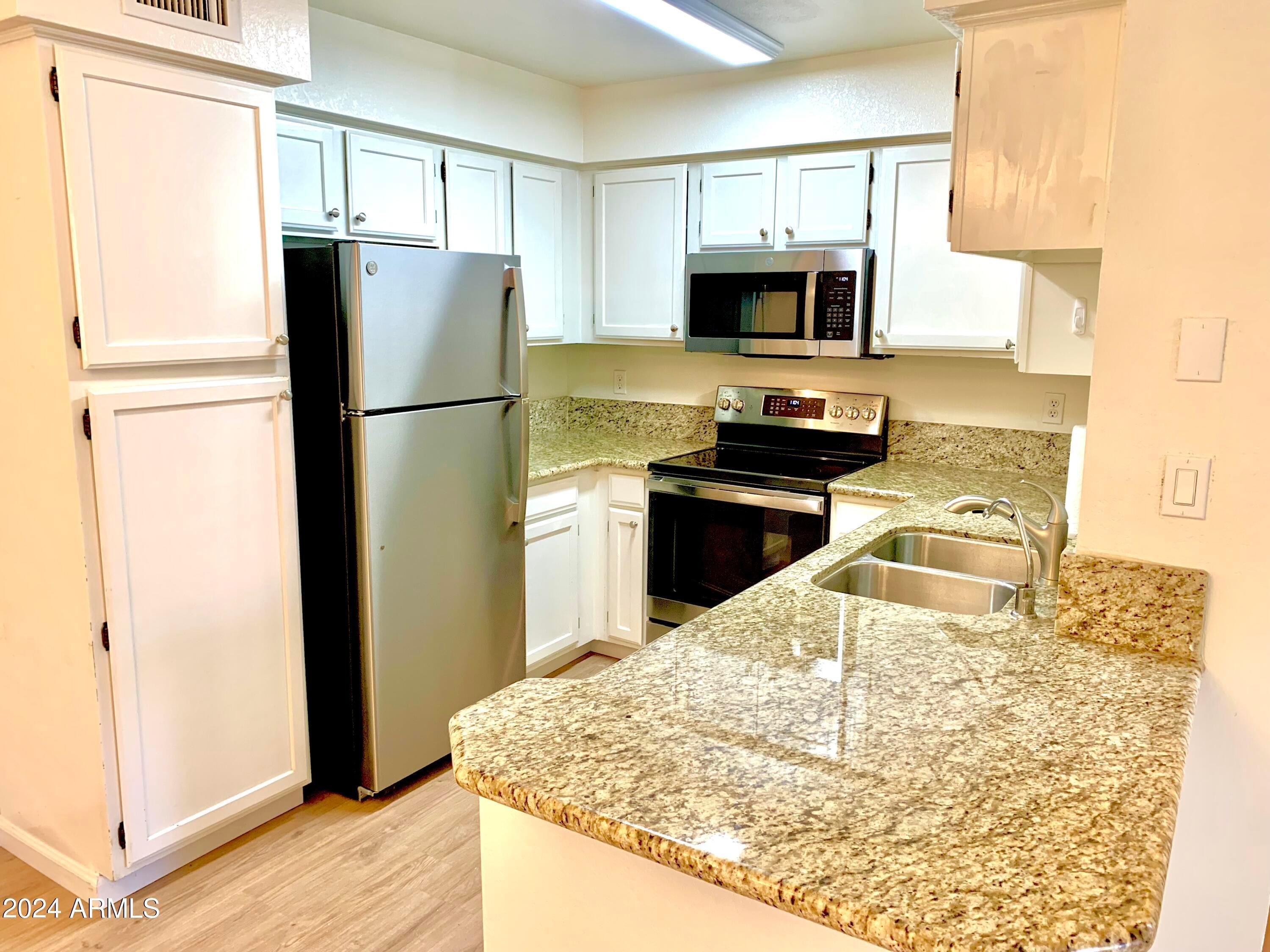 ** FIRST FLOOR RACQUET CLUB UNIT AVAILABE FOR RENT** BRAND NEW FLOORING THROUGHOUT** NEW LIGHTING FIXTURES* NEW BATHROOM VANITIES* NEWER STAINLESS STEEL APPLIANCES* FRESHLEY PAINTED* NEWLY FINISHED KITCHEN CABINETS* GRANITE COUNTERTOPS* DUAL PATIOS* LIGHT AND BRIGHT GREAT ROOM FLOORPLAN* Racquet Club is a gated community, has 5 Pools, 6 Spas, 9 lighted Tennis/PICKLEBALL Courts, fitness center, clubhouse, lighted walkways, trails, lush gardens and a beautiful lake. Conveniently located near the 101 freeway, numerous restaurants and shops! Washer/Dry/Refrigerator included. landlord may consider a small dog. May do short term min 6 month lease.
